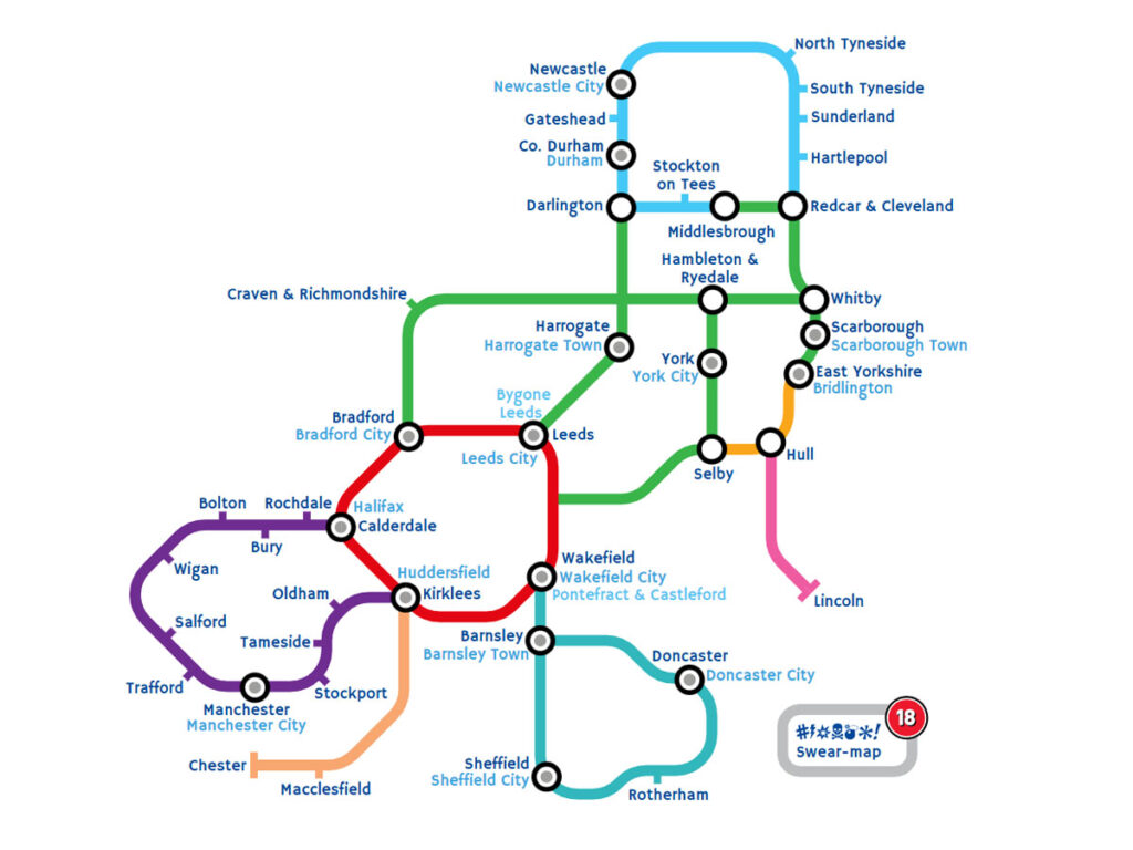 I’ve always liked the design of the London Underground map. It’s clean, functional, interesting and colourful. I did an Art Foundation course at Wakefield College, specialising in Graphic Design, and in the mid-90s I saw a hand-drawn diagram of Wakefield pubs in the style of Harry Beck on the wall of the Tut ’n’ Shive near the market. The pub and the market are long gone, but the idea stuck with me.